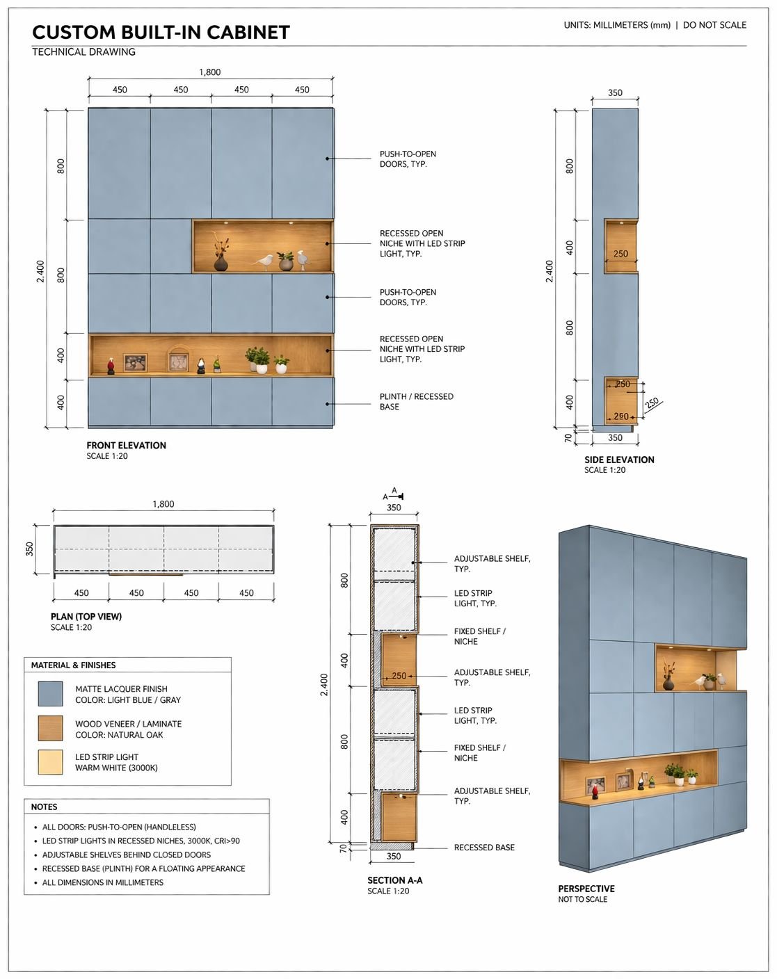- Ontworpen als naadloze ingebouwde wand voor woon- of eetruimtes